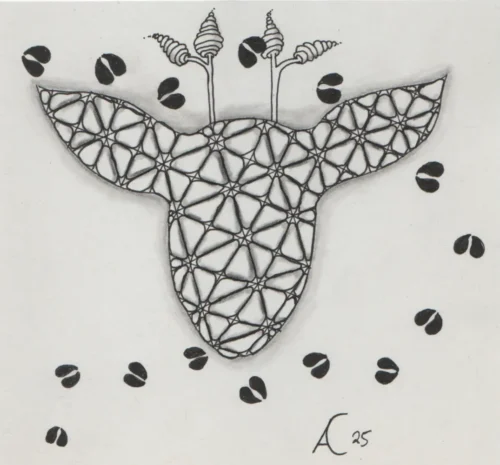 Für ein paar der kommenden Prompts habe ich schon Ideen. Bei anderen eher ein großes Fragezeichen. Immerhin habe ich meine Sammlung an Zentangle-Mustern wiedergefunden, der Scanner aus den Nullerjahren funktioniert noch und bisher läuft die Aktion entspannt.