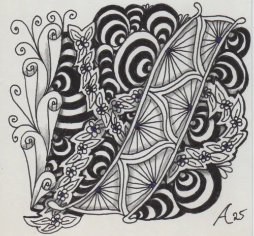 • Einmal gelernte Zentangle-Muster sind irgendwo hinten unten im Gehirn gespeichert, da muss ich nicht bei Null wieder anfangen.