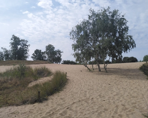 Und dann wurde es sehr sandig. Rechts und links des Weges war im Groben Heidevegetation.