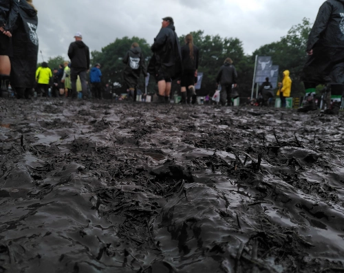 Im letzten Jahr war ich nur einen Tag auf dem WOA. Es war einfach von Energielevel her nicht mehr drin, obwohl ich ein Zelt gebucht hatte, das dort schon für mich aufgebaut worden war. Aber 2024 war es auch heißer als dieses Jahr. Irgendwie kann Wacken hauptsächlich zwei Zustände: Matsch oder Staub.
