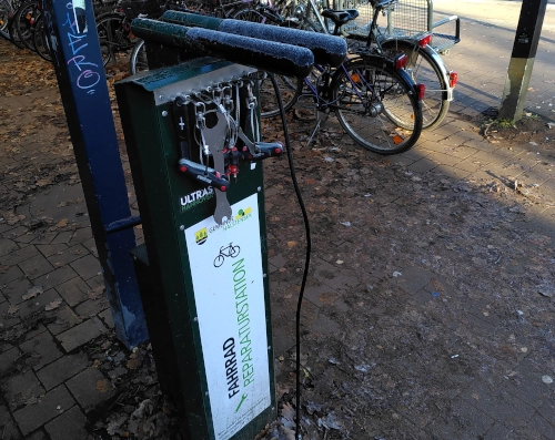 In Halstenbek stehen an mehreren Orten Fahrrad-Reparaturstationen. Vorbildlich!