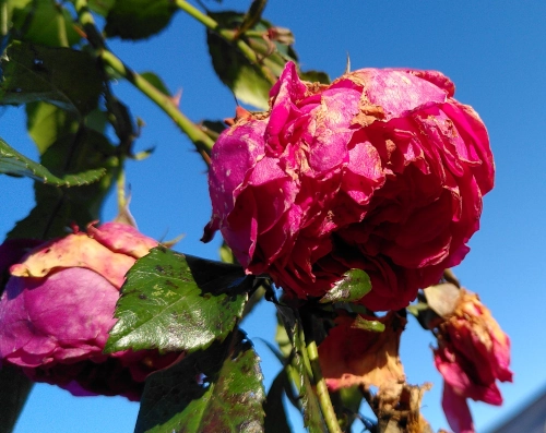 Nach dem Frost hingen diese Rosen erstmal malerisch durch.